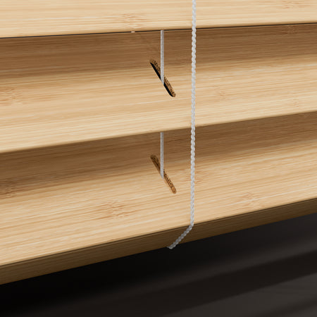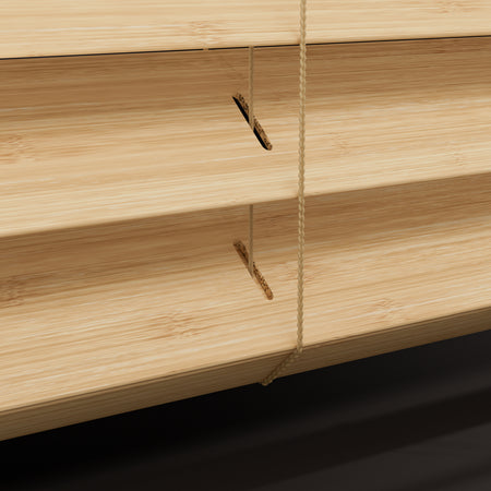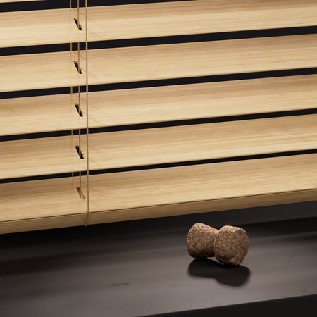 Onze houten en bamboe jaloezieën bieden wij aan in 50mm en 65mm. De breedte bepaalt hoeveel je binnen laat. Van zonnestraal tot nieuwsgierige blikken.