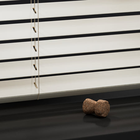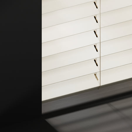 Dekkend gelakt of natuurlijk gebeitst. We bieden al onze houten jaloezieën in de perfecte 50mm lamel of extra brede 65mm, mét of zonder ladderband.
