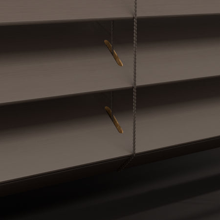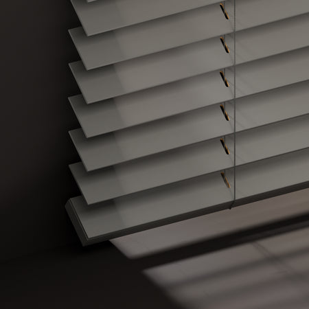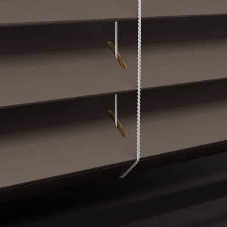 Dekkend gelakt of natuurlijk gebeitst. We bieden al onze houten jaloezieën in de perfecte 50mm lamel of extra brede 65mm, mét of zonder ladderband.